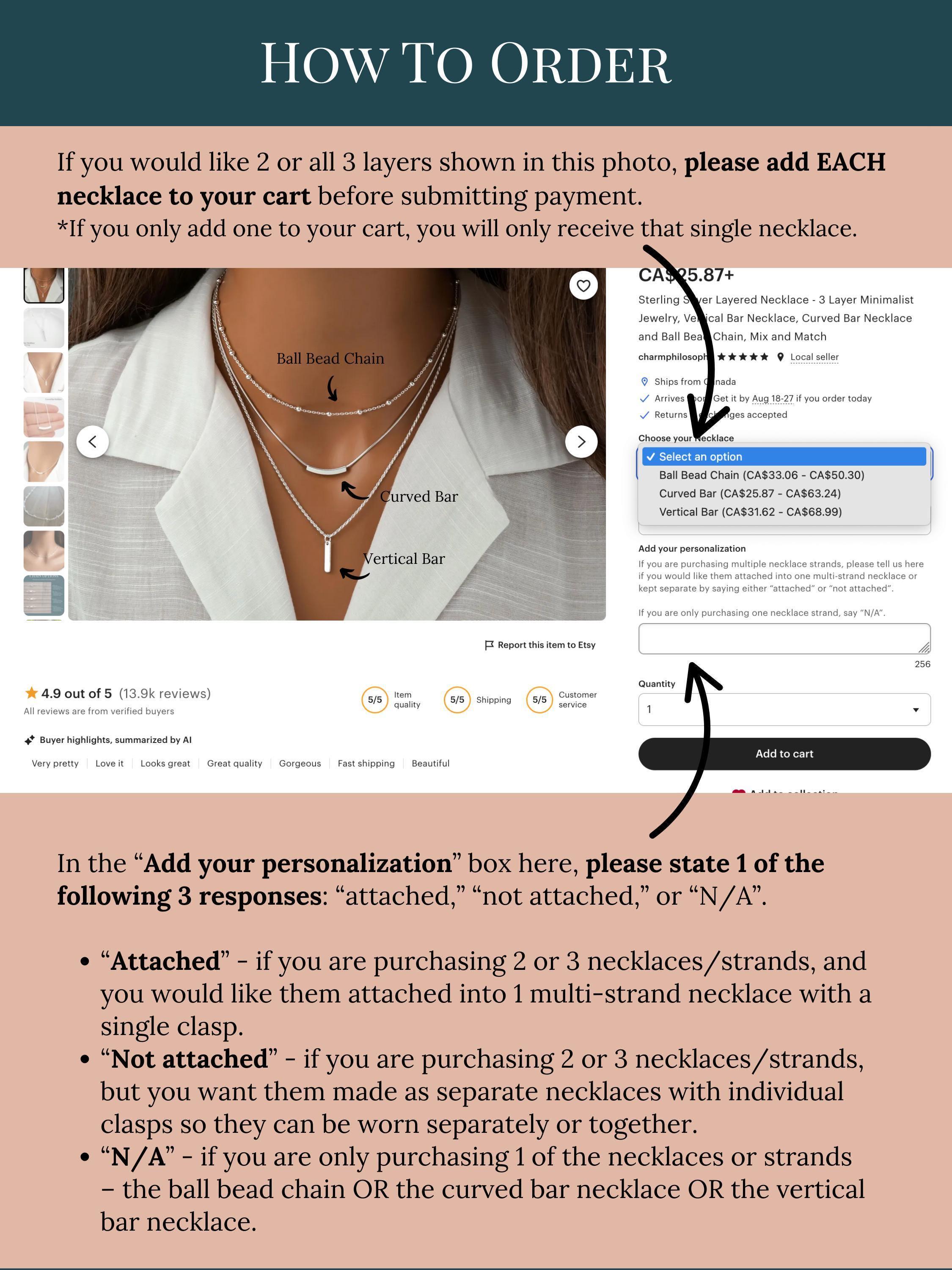 ◆ “N/A” - if you are only purchasing 1 of the necklaces or strands – the ball bead chain OR the curved bar necklace OR the vertical bar charm necklace.