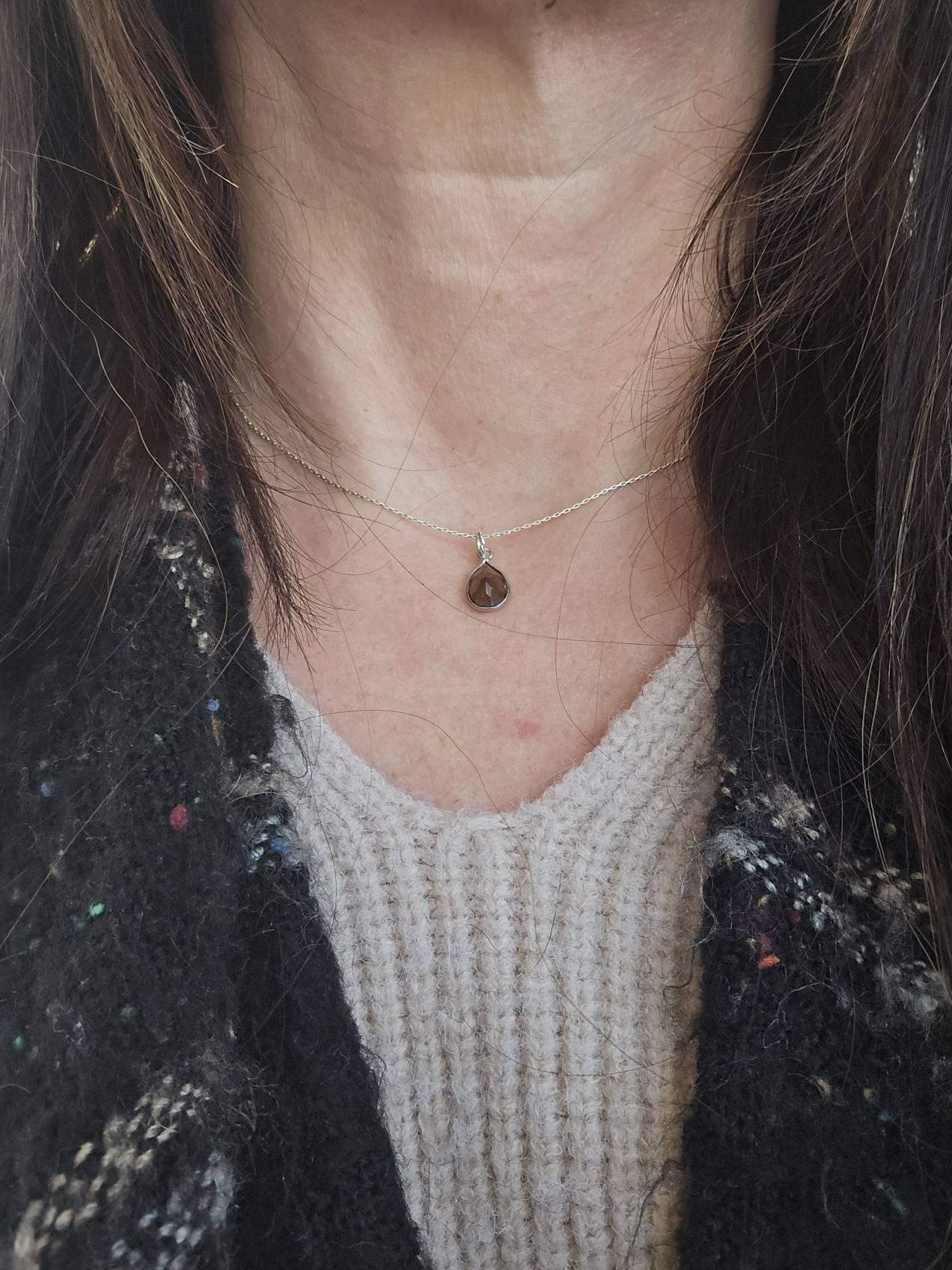 Dainty faceted smoky quartz teardrop gemstone necklace. Simple everyday necklace.