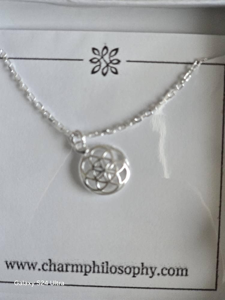 This tiny Flower of Life necklace is made of 925 sterling silver.