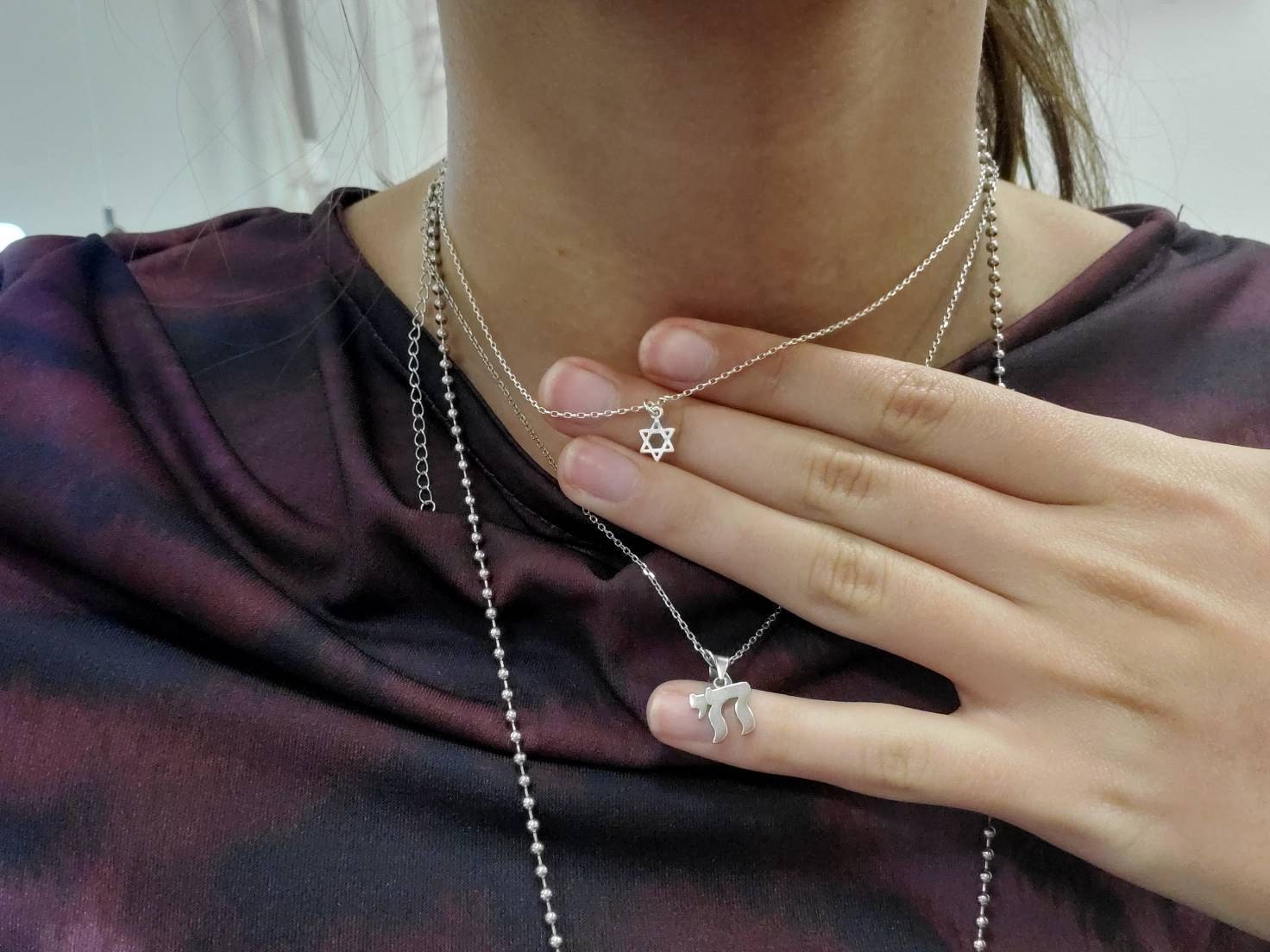 Very dainty Jewish chai symbol necklace in 925 sterling silver. We recommend the curb link chain for males.
