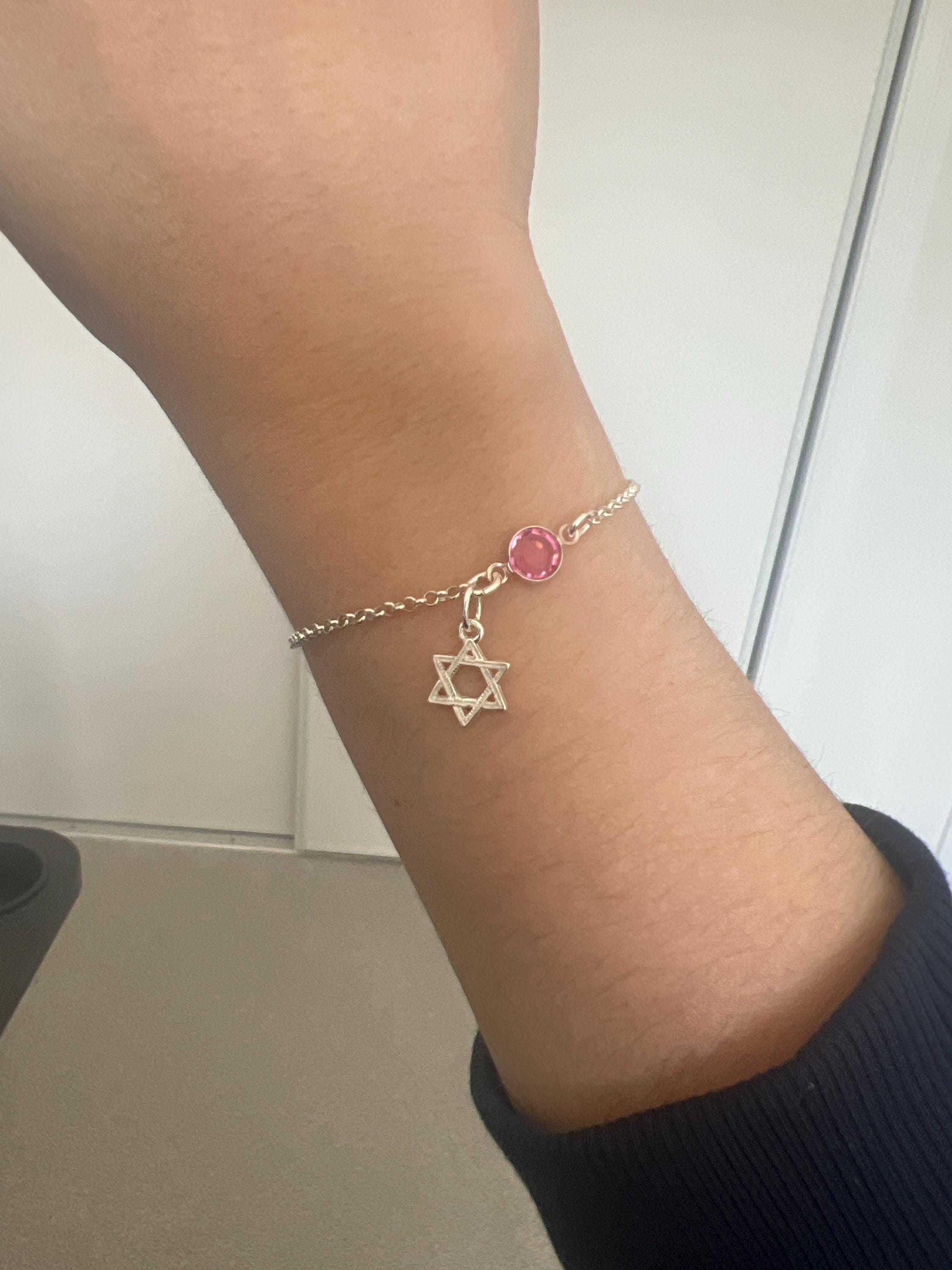 Dainty 925 sterling silver Star of David charm bracelet or anklet with a personalized birthstone.
